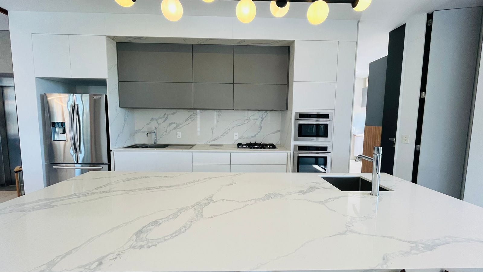 A cozinha americana, moderna e prática, é acompanhada por despensa e lavanderia.
