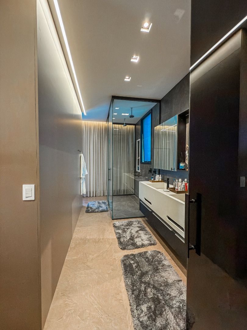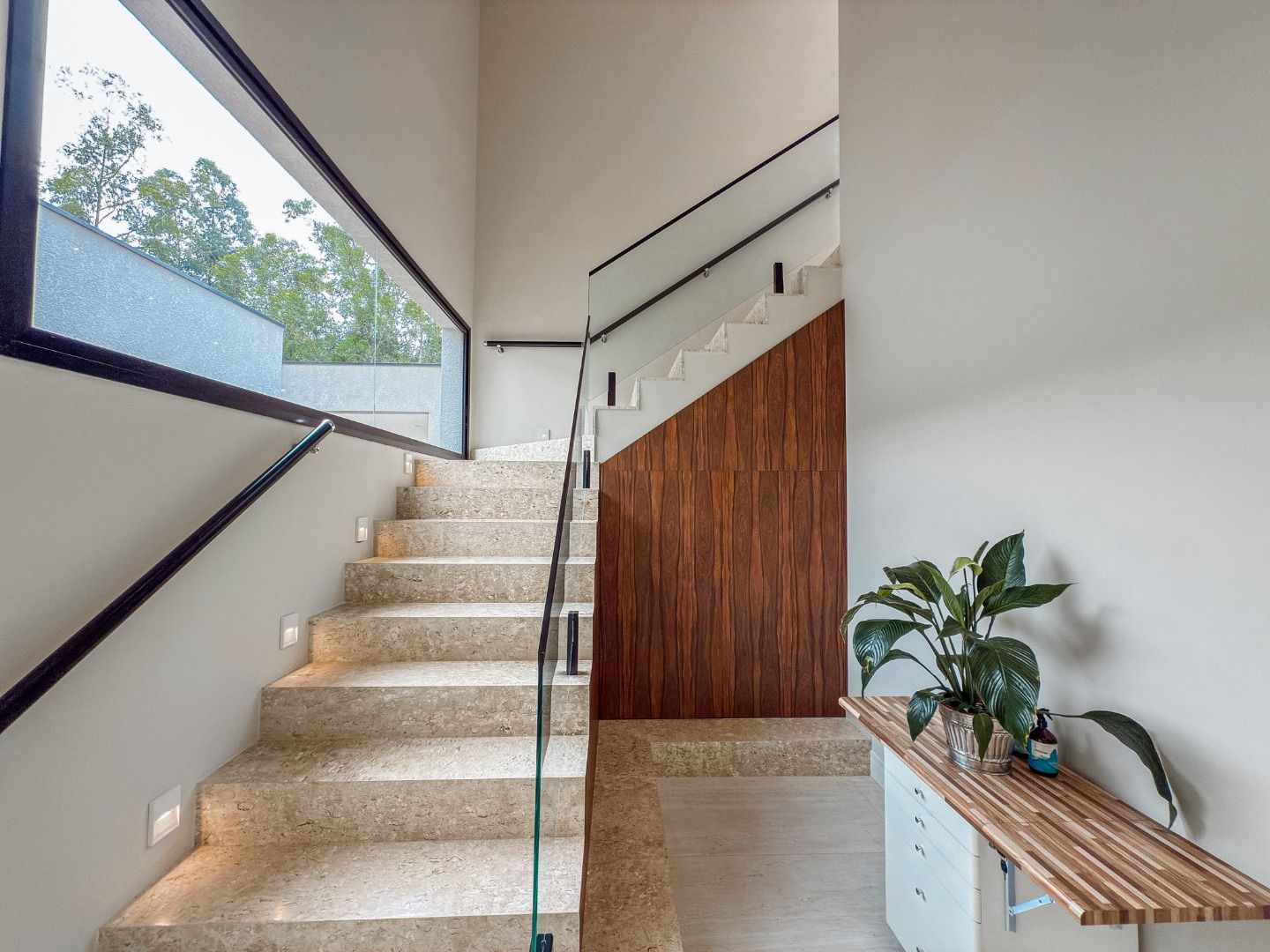Logo no hall de entrada, a residência impressiona com acabamentos sofisticados, parede revestidas e integração total dos espaços. Um elevador garante praticidade e acessibilidade a todos os pavimentos.