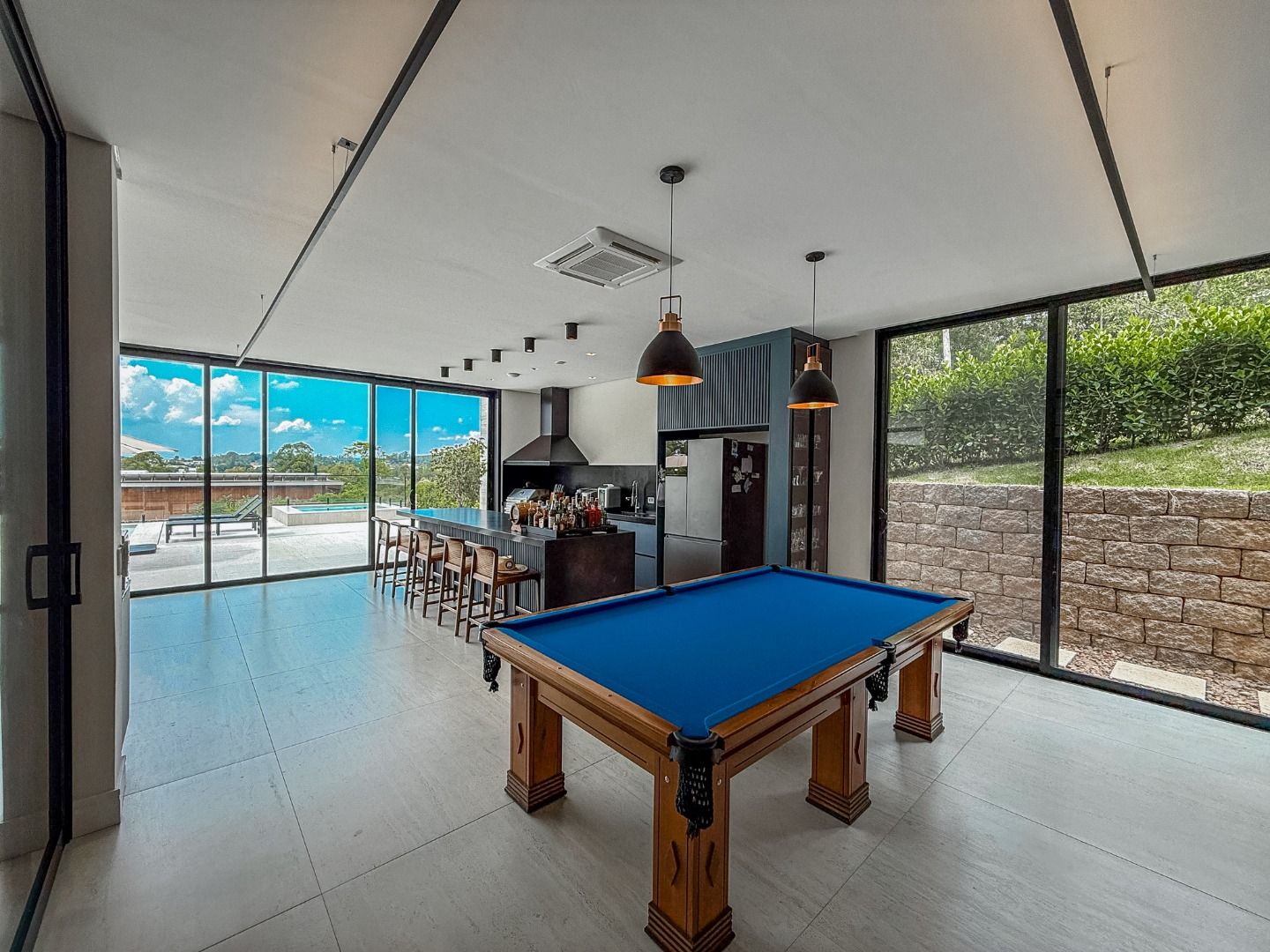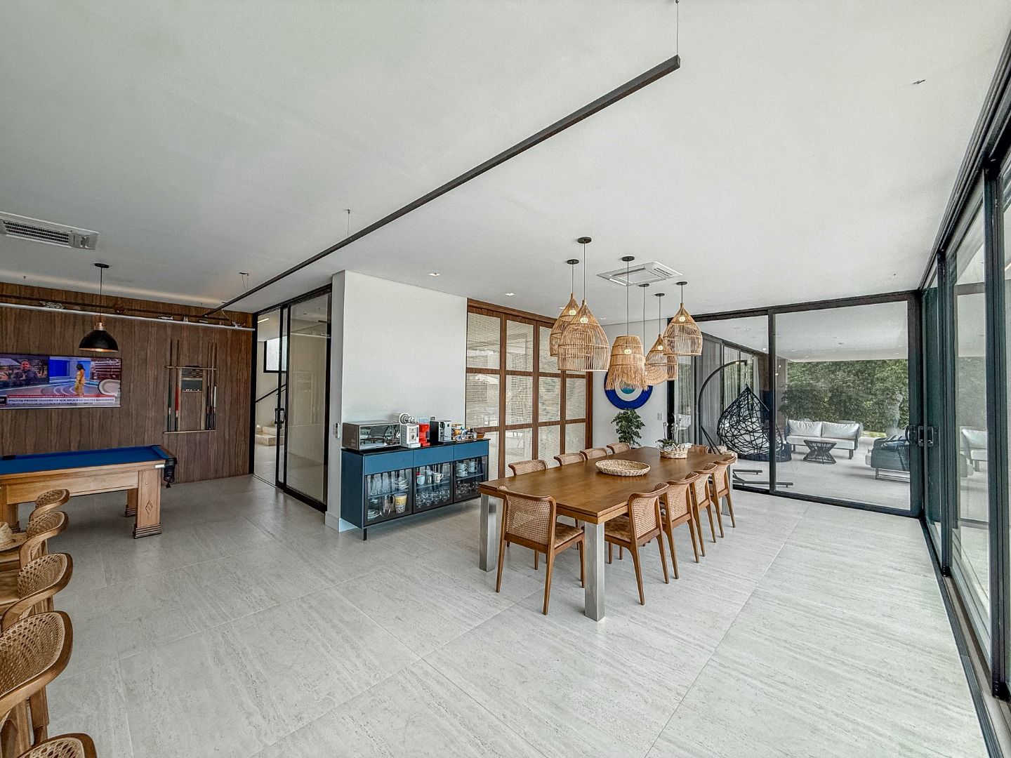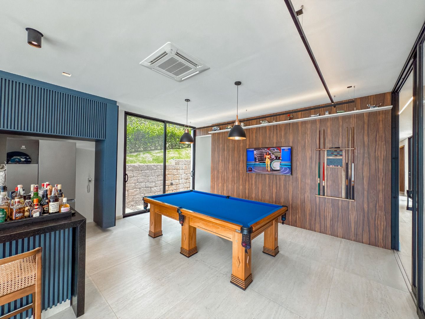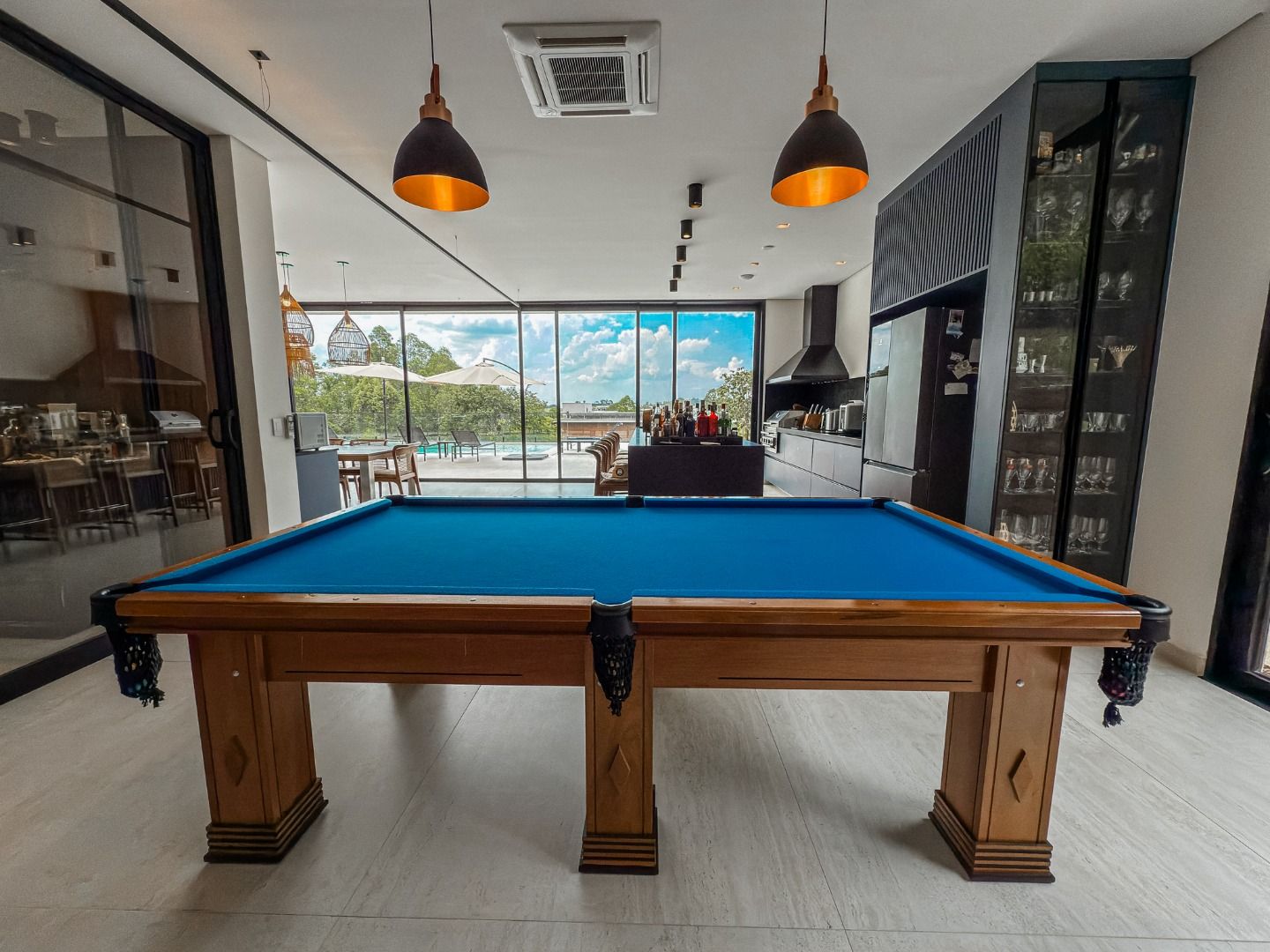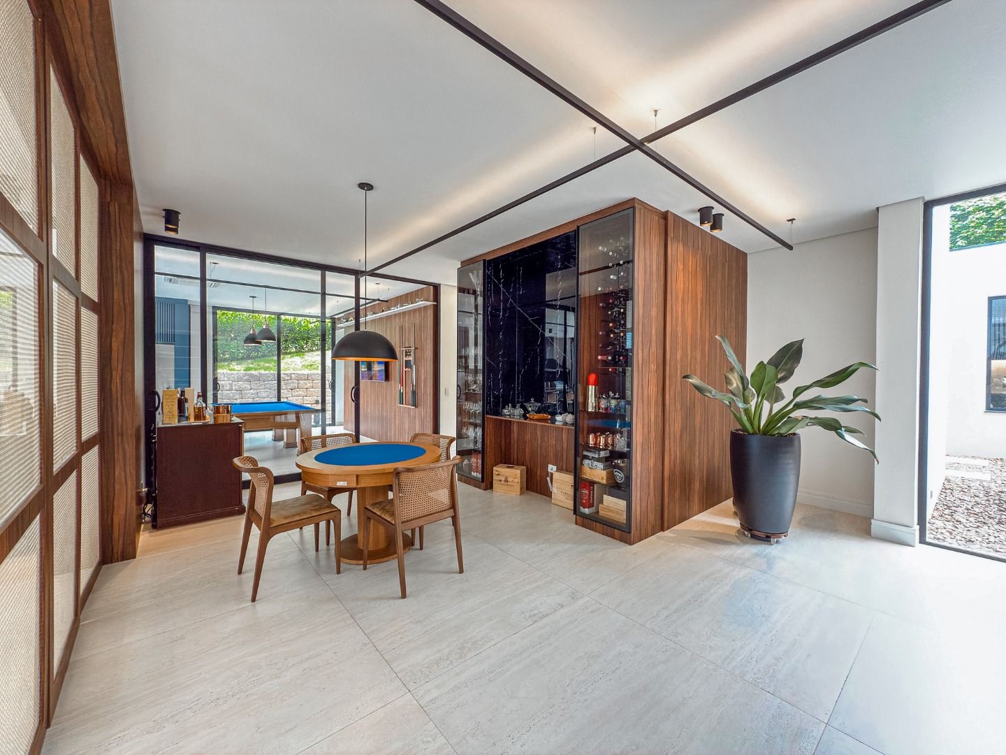 O térreo reúne uma estrutura completa de lazer: sala de jogos moderna, adega climatizada e espaço gourmet totalmente integrado, ideal para receber amigos e familiares. Para maior comodidade, dispõe de vestiários masculino e feminino.