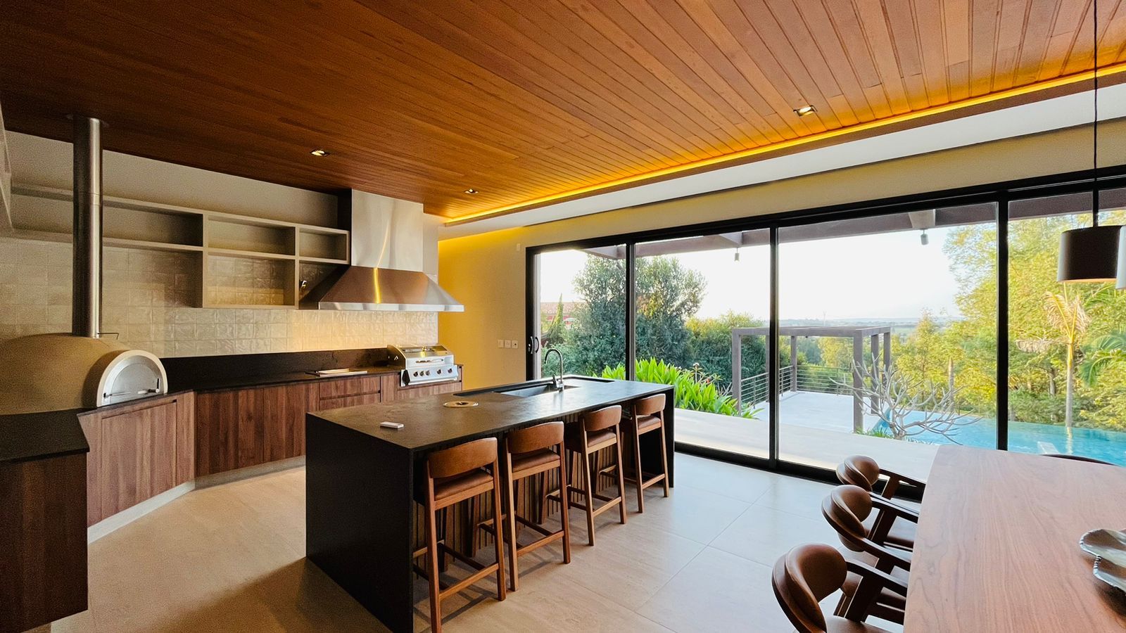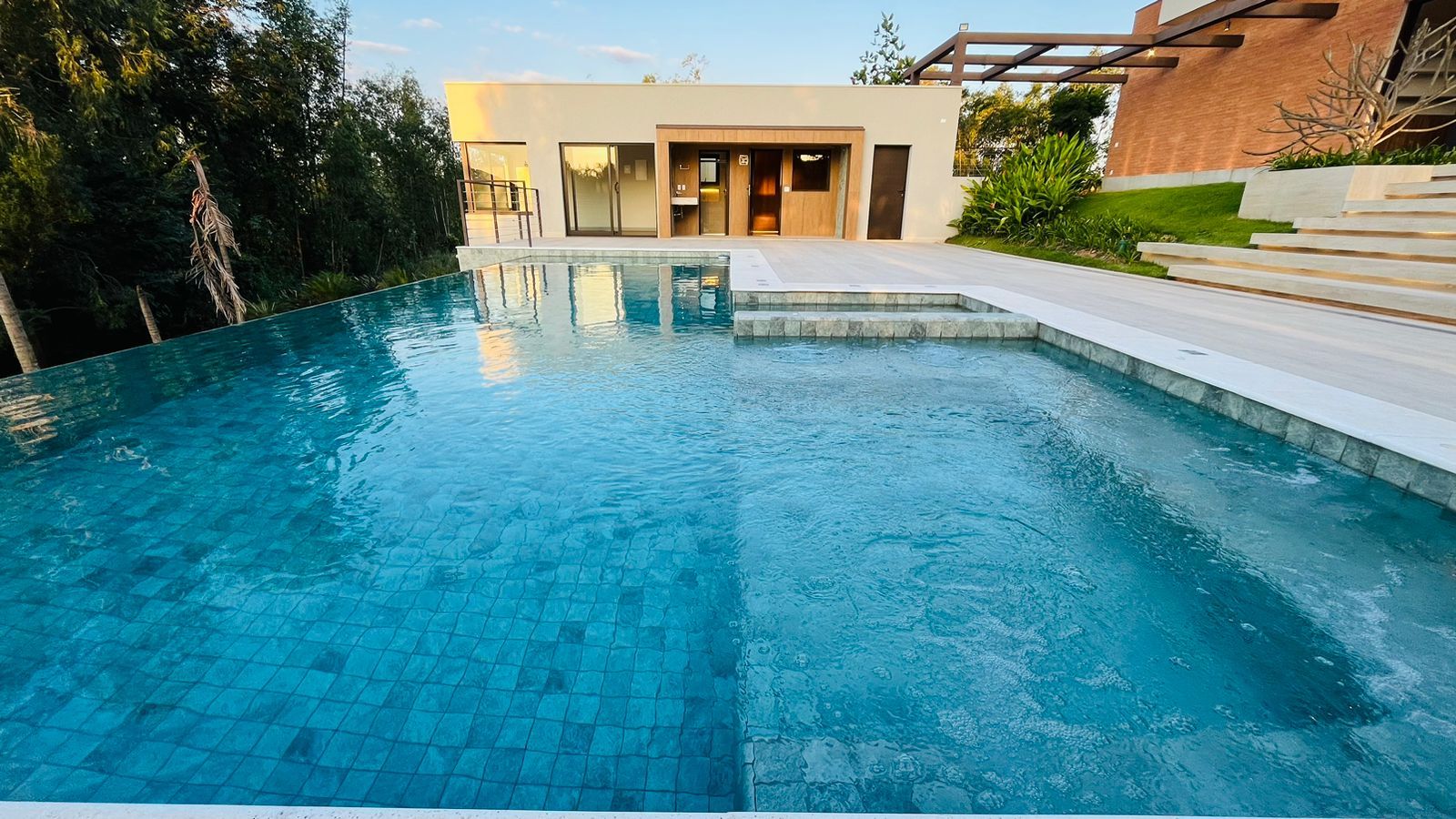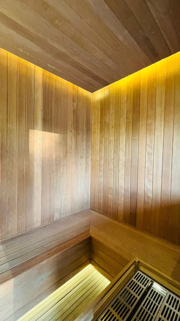 Para momentos de lazer, possui piscina com hidromassagem e borda infinita, churrasqueira e forno de pizza, sauna, além de infraestrutura com poço artesiano, cisterna e sistema de irrigação.