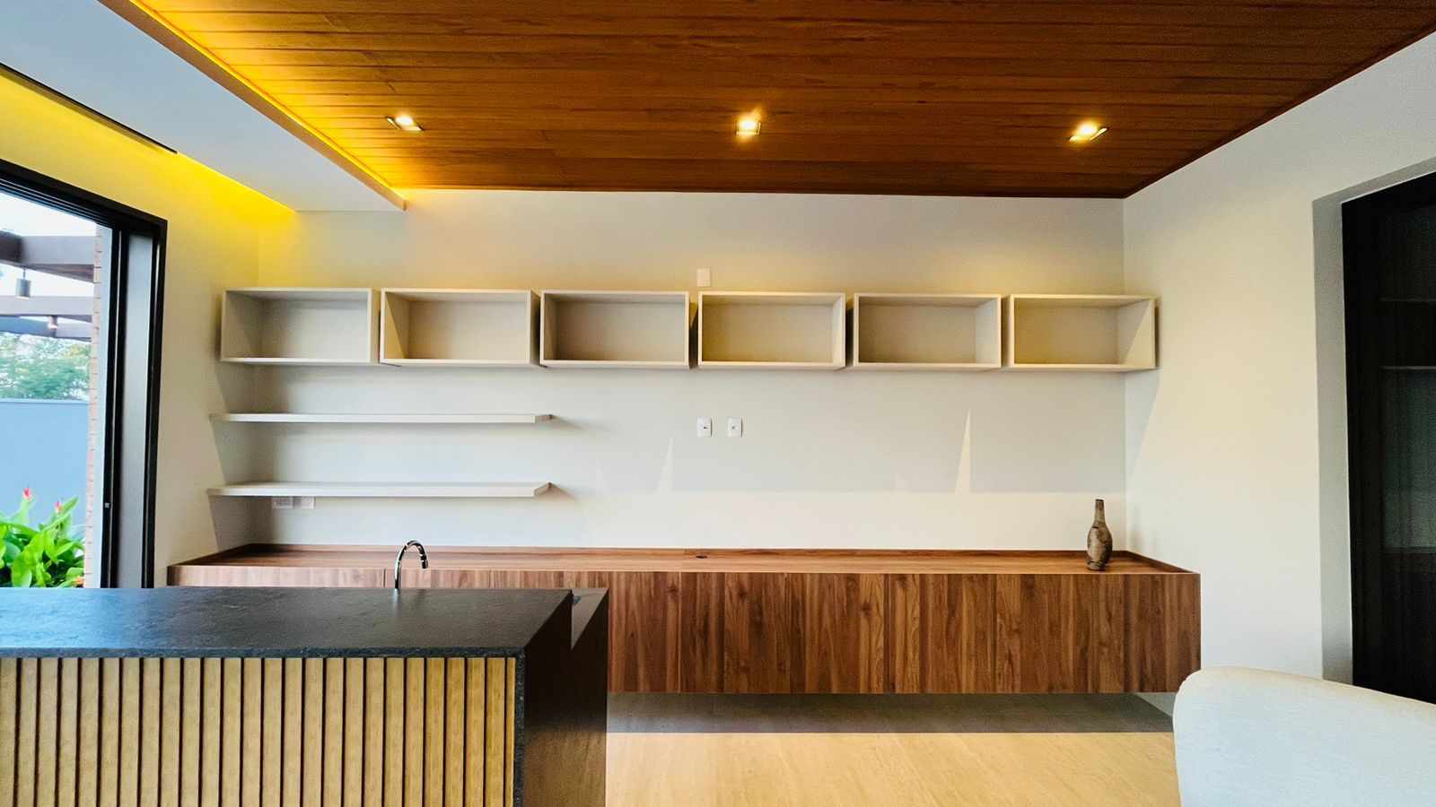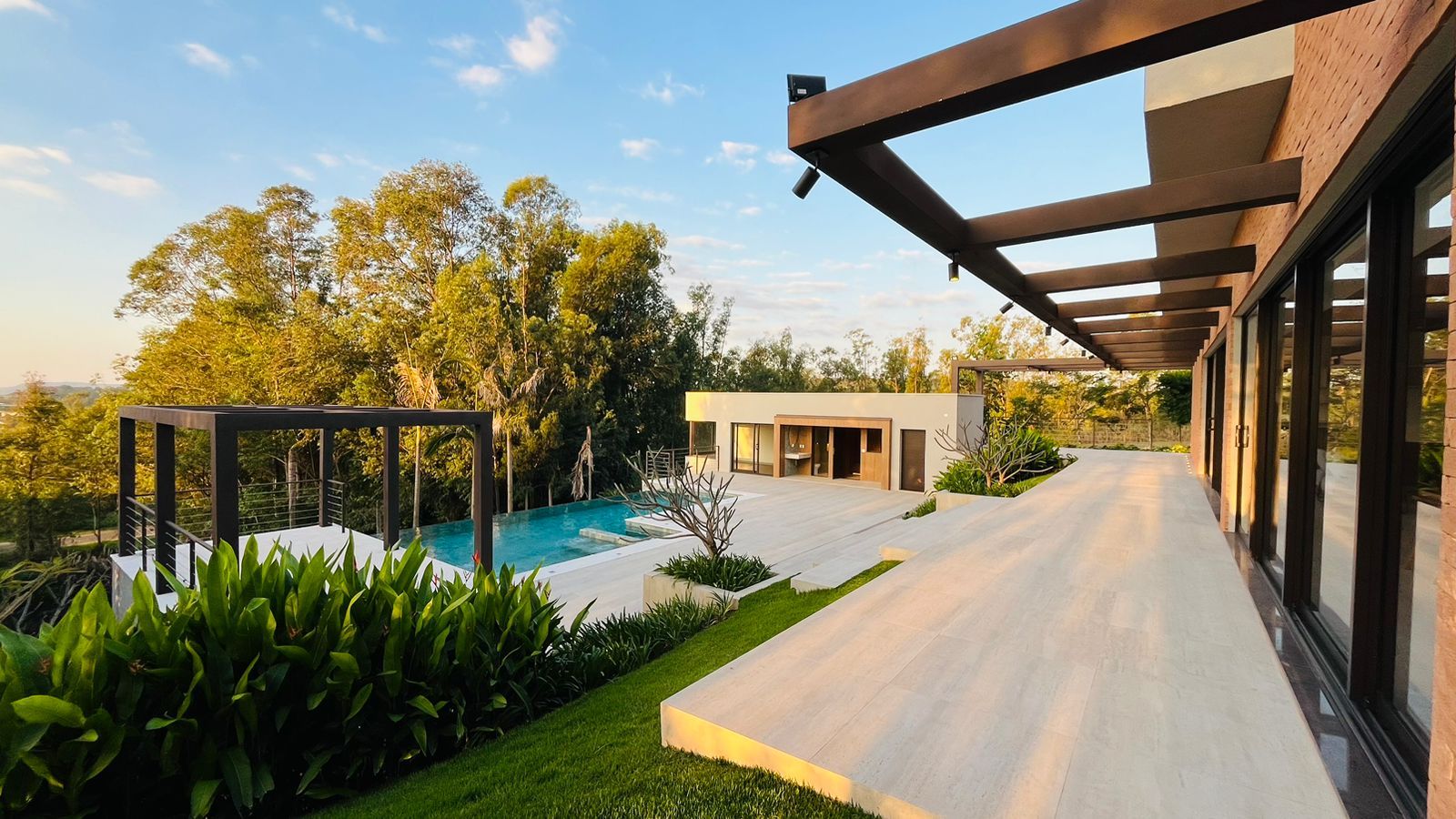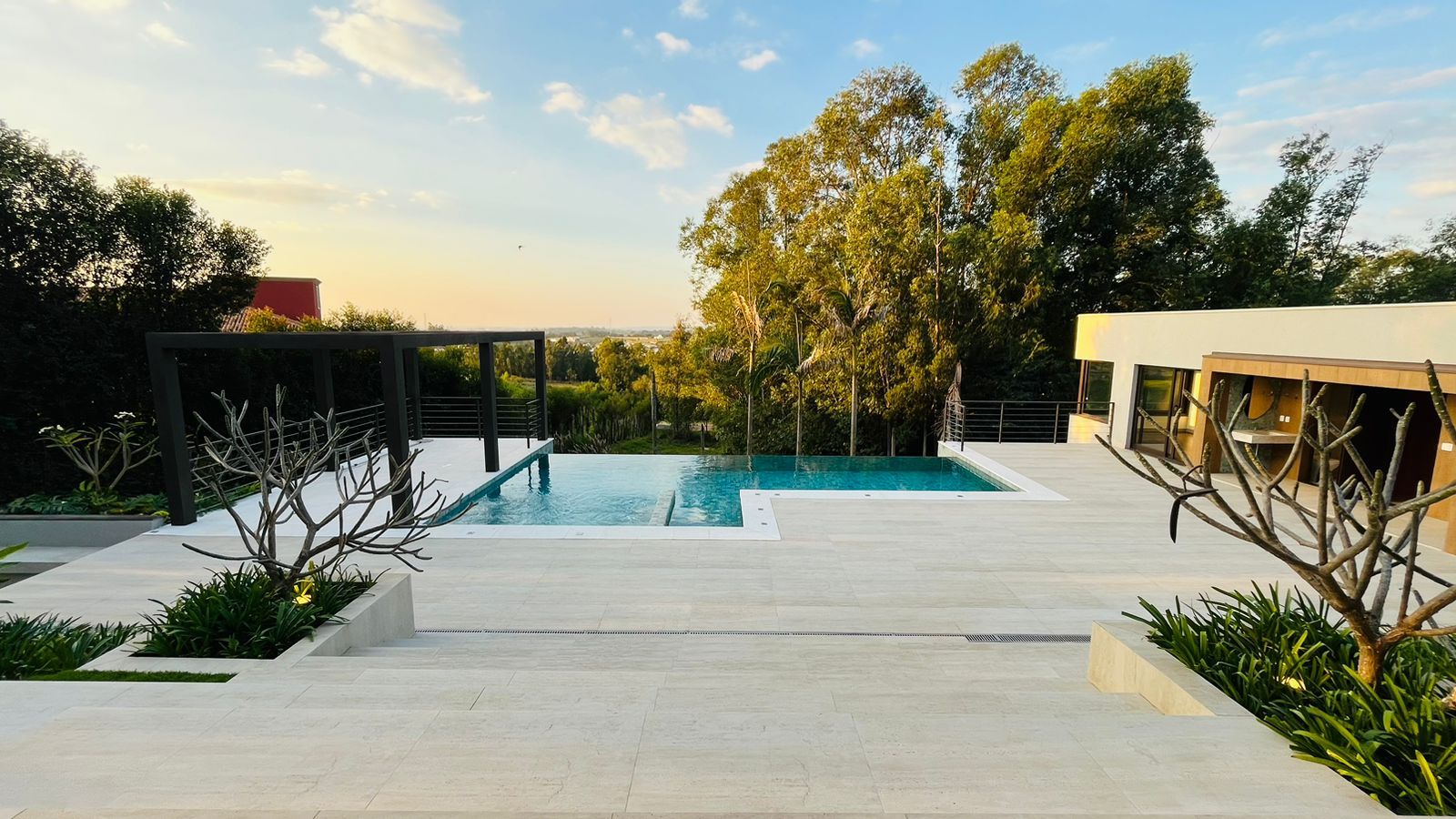 Para momentos de lazer, possui piscina com hidromassagem e borda infinita, churrasqueira e forno de pizza, sauna, além de infraestrutura com poço artesiano, cisterna e sistema de irrigação.