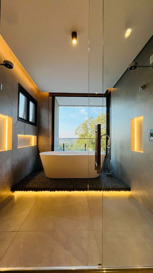 Belíssima residência com arquitetura moderna e contemporânea, localizada em ponto privilegiado do condomínio, oferecendo um verdadeiro refúgio para relaxamento e bem-estar.