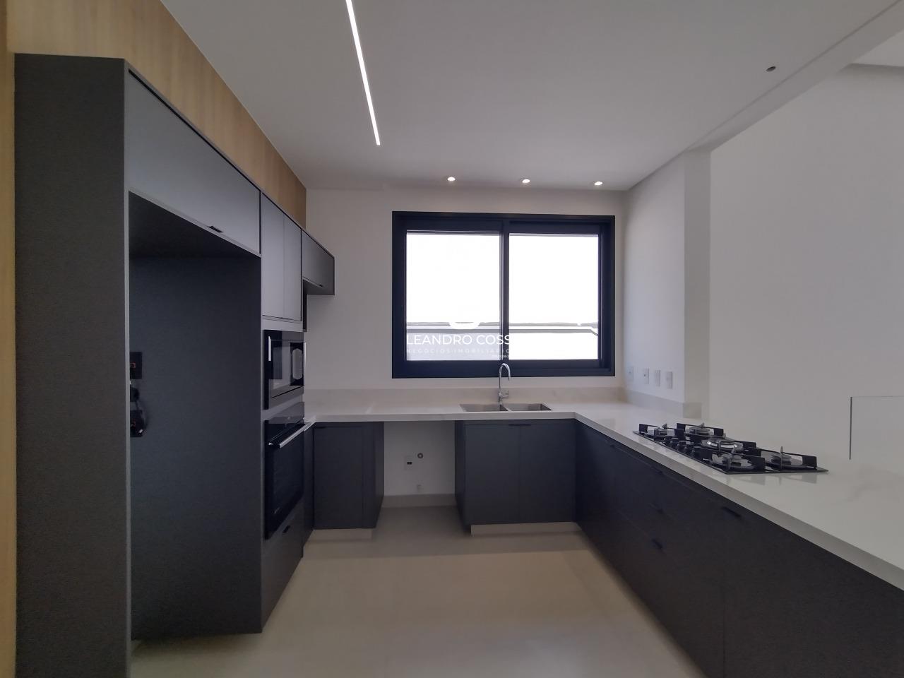 O imóvel oferece um escritório, ideal para home office, e uma cozinha planejada com torre quente, cooktop, ponto de água para geladeira e filtro, além de infraestrutura para lava-louças. Conta também com sala de jantar, living amplo e lavanderia com armários planejados.
